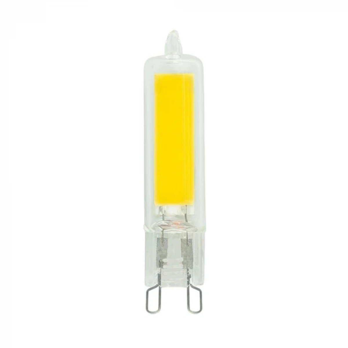 Светодиодная лампочка прямосторонней формы с цоколем G9 и размерами 55 мм по высоте обладает мощностью в 6 W, благодаря чему она может осветить 2 кв. м. Цветовая температура – 4000 К, т.е. белый свет, подходящий для рабочего настроя (не рекомендуется для детской комнаты). Изделие рассчитано на использование в сети с переменным напряжением в 220В.