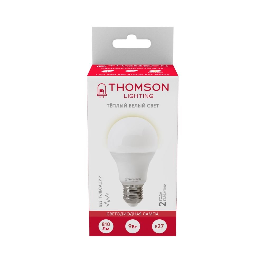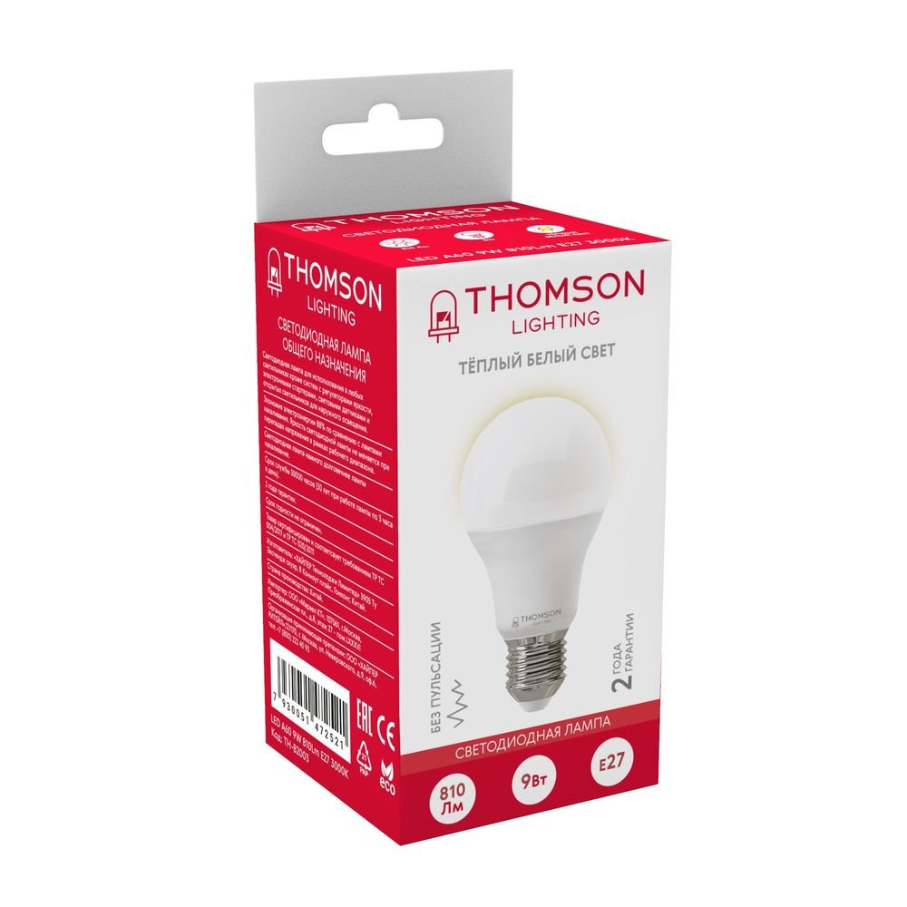 Светодиодная лампочка в форме груши с цоколем E27 и размерами 110 мм по высоте и диаметром в 60 мм обладает мощностью в 9 W, благодаря чему она может осветить 4 кв. м. Цветовая температура – 3000 К, т.е. теплый свет, создающий атмосферу уюта. Изделие рассчитано на использование в сети с переменным напряжением в 170-265В.