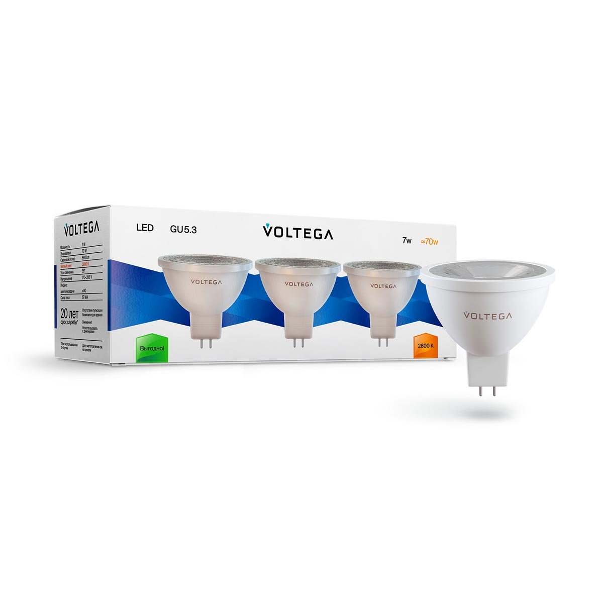 Набор светодиодных ламп Voltega GU5.3 7W 2800К прозрачная 7178
