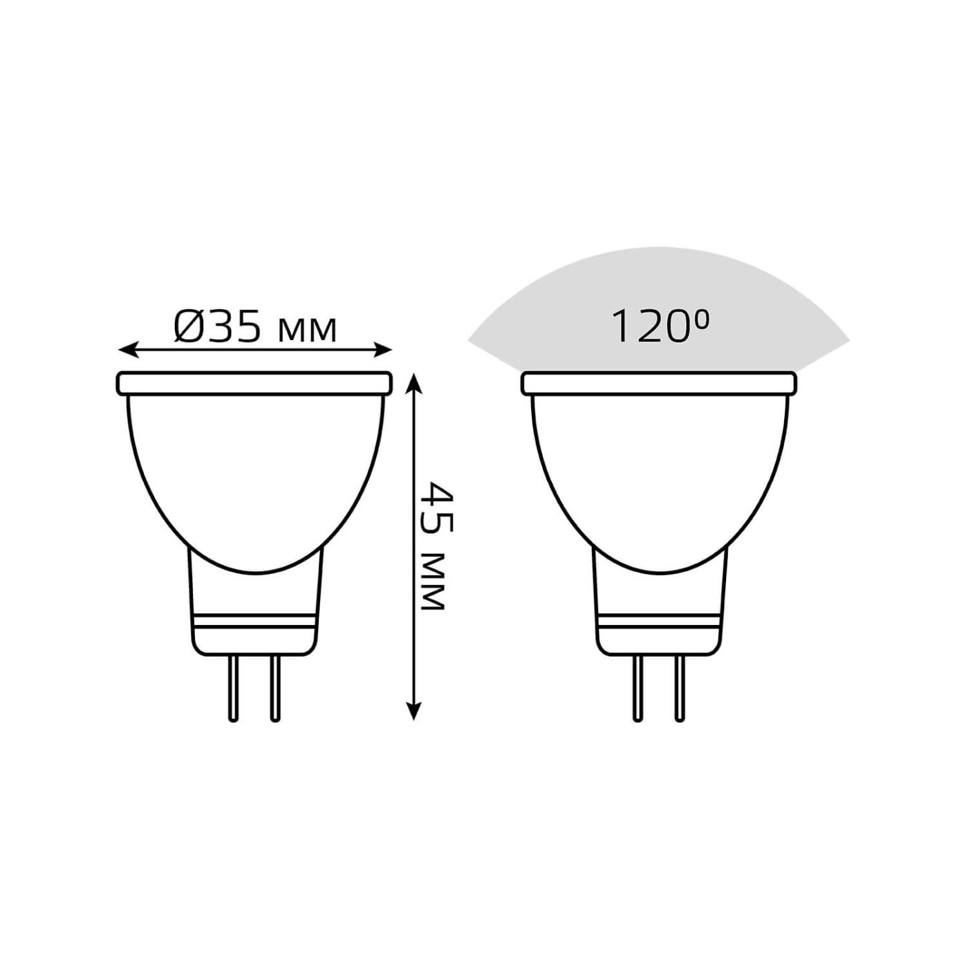 Светодиодная лампочка в форме полусферы с цоколем GU4 и размерами 45 мм по высоте и диаметром в 35 мм обладает мощностью в 3 W, благодаря чему она может осветить 1.5 кв. м. Цветовая температура – 6500 К, т.е. холодный свет синего оттенка (не рекомендуется для применения на кухне, так как искажает цвет готовых блюд). Изделие рассчитано на использование в сети с переменным напряжением в 230В.