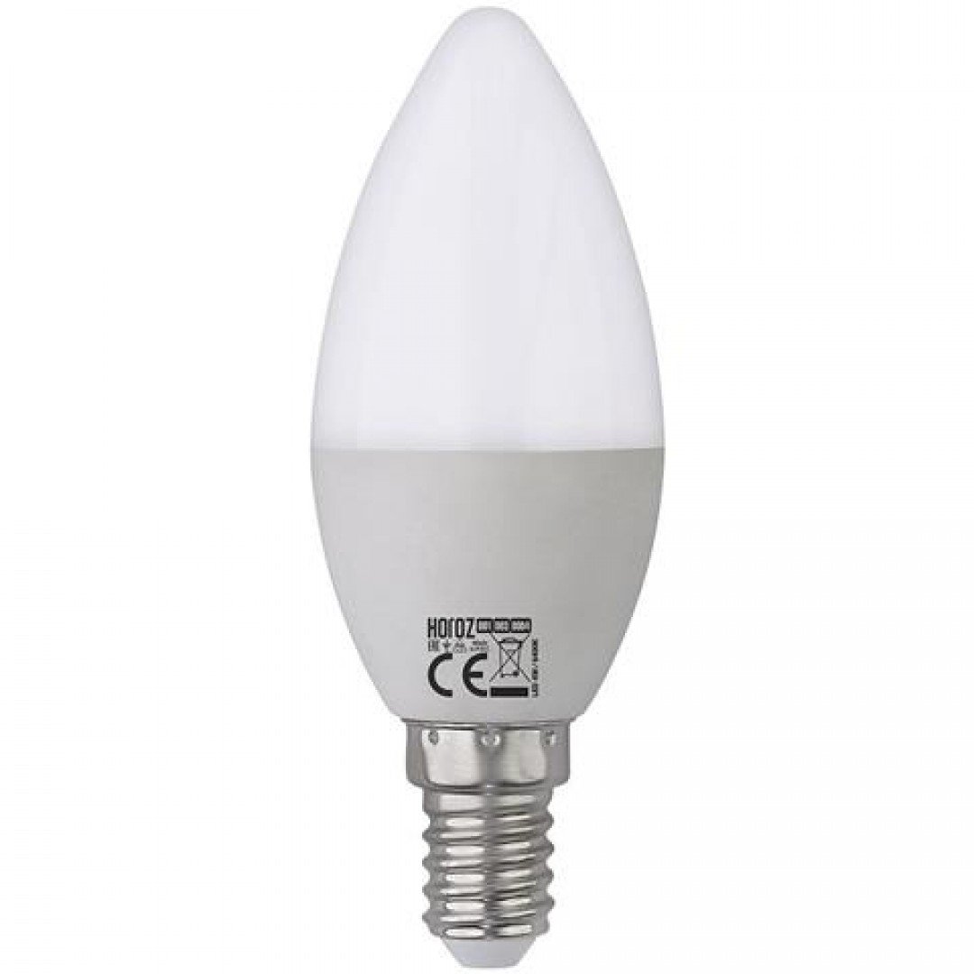 Светодиодная лампочка в форме свечи с цоколем E14 и размерами 100 мм по высоте и диаметром в 37 мм обладает мощностью в 4 W, благодаря чему она может осветить 1.3 кв. м. Цветовая температура – 6400 К, т.е. холодный свет синего оттенка (не рекомендуется для применения на кухне, так как искажает цвет готовых блюд). Изделие рассчитано на использование в сети с переменным напряжением в 175-250В.