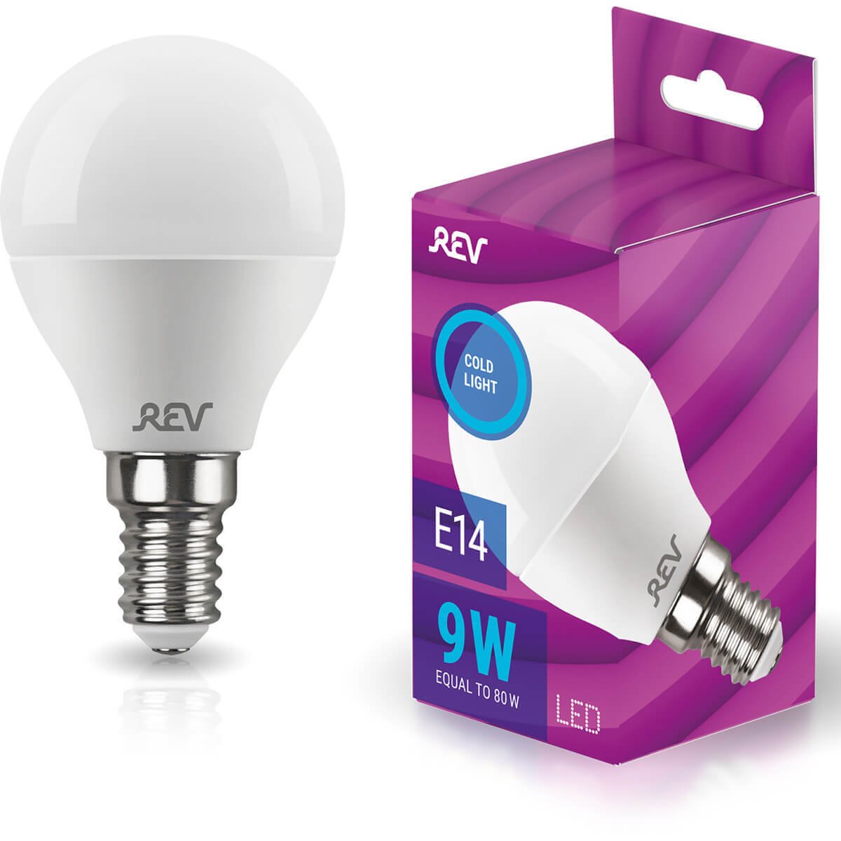 Светодиодная лампочка в форме шара с цоколем E14 и размерами 79 мм по высоте и диаметром в 45 мм обладает мощностью в 9 W, благодаря чему она может осветить 3 кв. м. Цветовая температура – 6500 К, т.е. холодный свет синего оттенка (не рекомендуется для применения на кухне, так как искажает цвет готовых блюд). Изделие рассчитано на использование в сети с переменным напряжением в 230В.