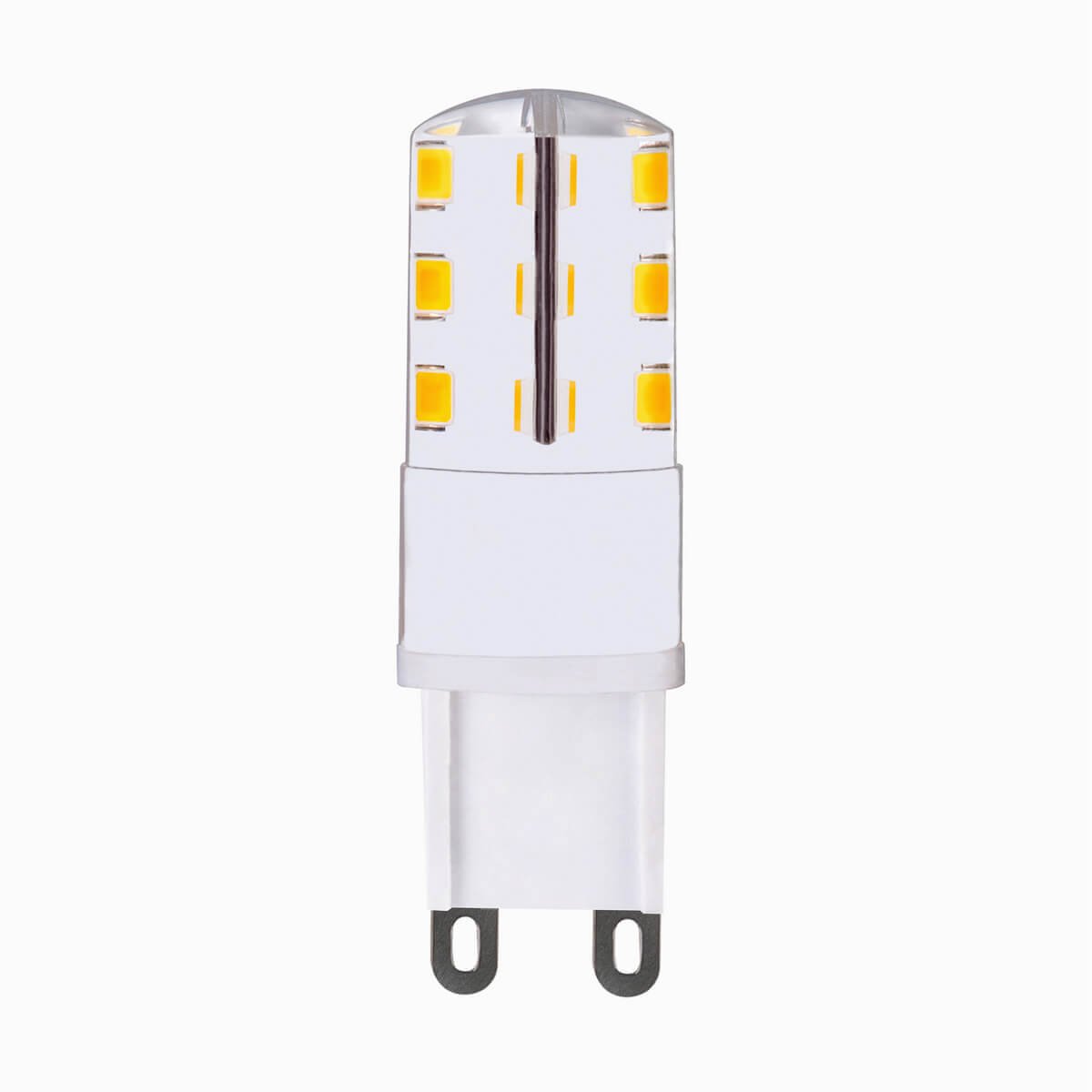 Светодиодная лампочка в форме колбы с цоколем G9 и размерами 55 мм по высоте обладает мощностью в 1.6 W, благодаря чему она может осветить 0.5 кв. м. Цветовая температура – 4000 К, т.е. белый свет, подходящий для рабочего настроя (не рекомендуется для детской комнаты). Изделие рассчитано на использование в сети с переменным напряжением в 230В.