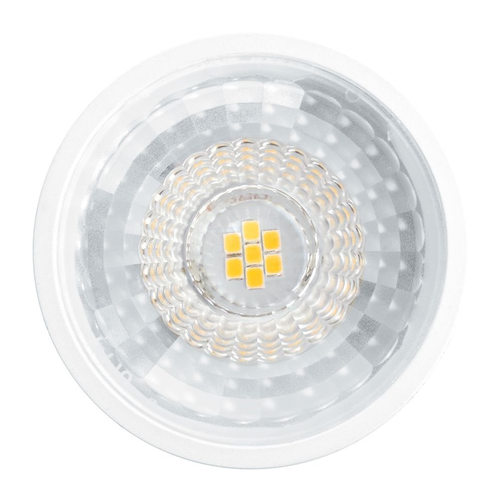 Светодиодная лампочка в форме полусферы с цоколем G5.3 и размерами 52 мм по высоте и диаметром в 50 мм обладает мощностью в 7 W, благодаря чему она может осветить 2.3 кв. м. Цветовая температура – 2700 К, т.е. теплый свет, создающий атмосферу уюта. Изделие рассчитано на использование в сети с переменным напряжением в 220-240В.