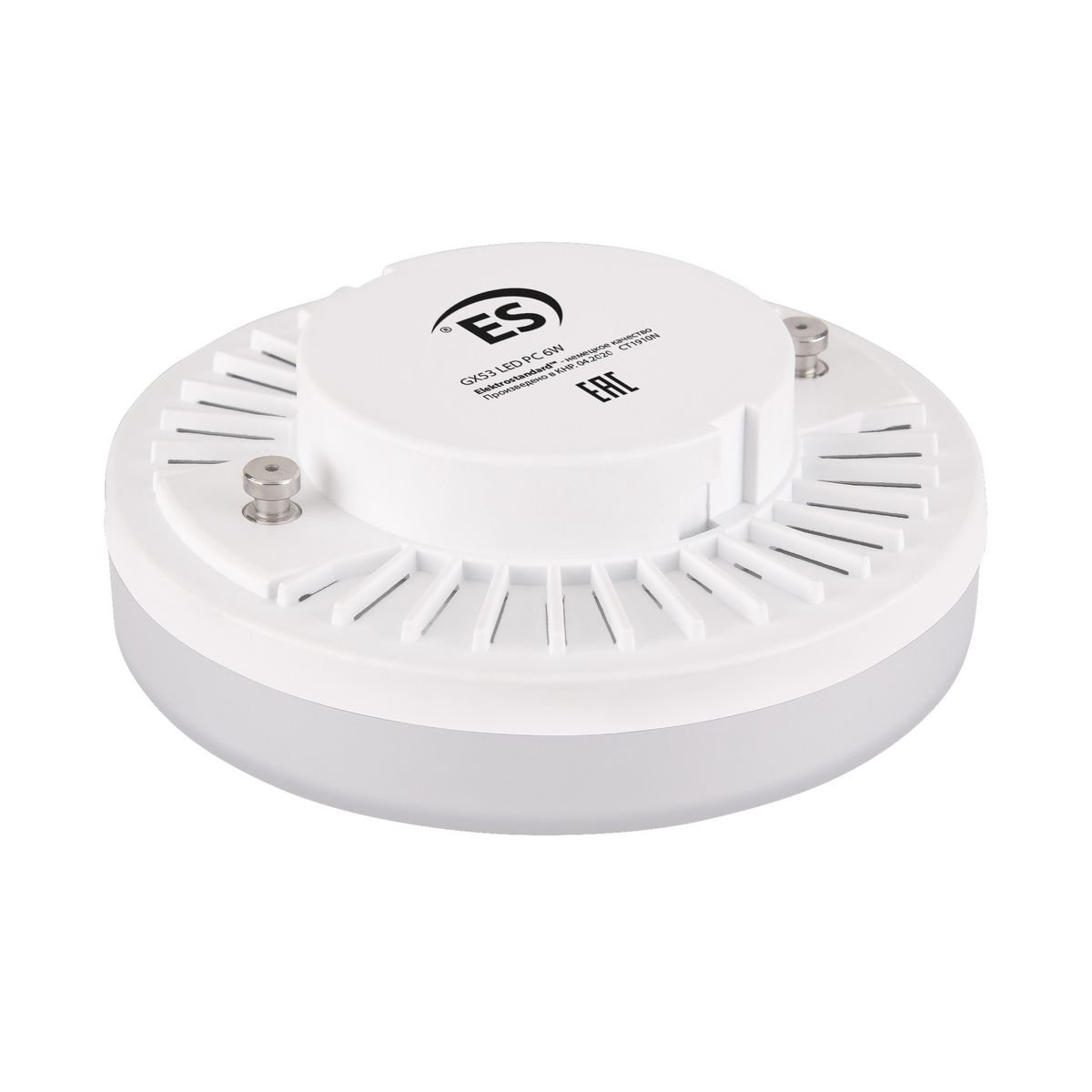 Светодиодная лампочка в форме таблетки с цоколем GX53 и размерами 25 мм по высоте и диаметром в 75 мм обладает мощностью в 6 W, благодаря чему она может осветить 2 кв. м. Цветовая температура – 6500 К, т.е. холодный свет синего оттенка (не рекомендуется для применения на кухне, так как искажает цвет готовых блюд). Изделие рассчитано на использование в сети с переменным напряжением в 220-240В.
