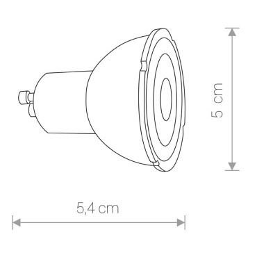 Светодиодная лампочка в форме полусферы с цоколем GU10 и размерами 54 мм по высоте и диаметром в 50 мм обладает мощностью в 7 W, благодаря чему она может осветить 2.3 кв. м. Цветовая температура – 4000 К, т.е. белый свет, подходящий для рабочего настроя (не рекомендуется для детской комнаты). Изделие рассчитано на использование в сети с переменным напряжением в 220-240В.