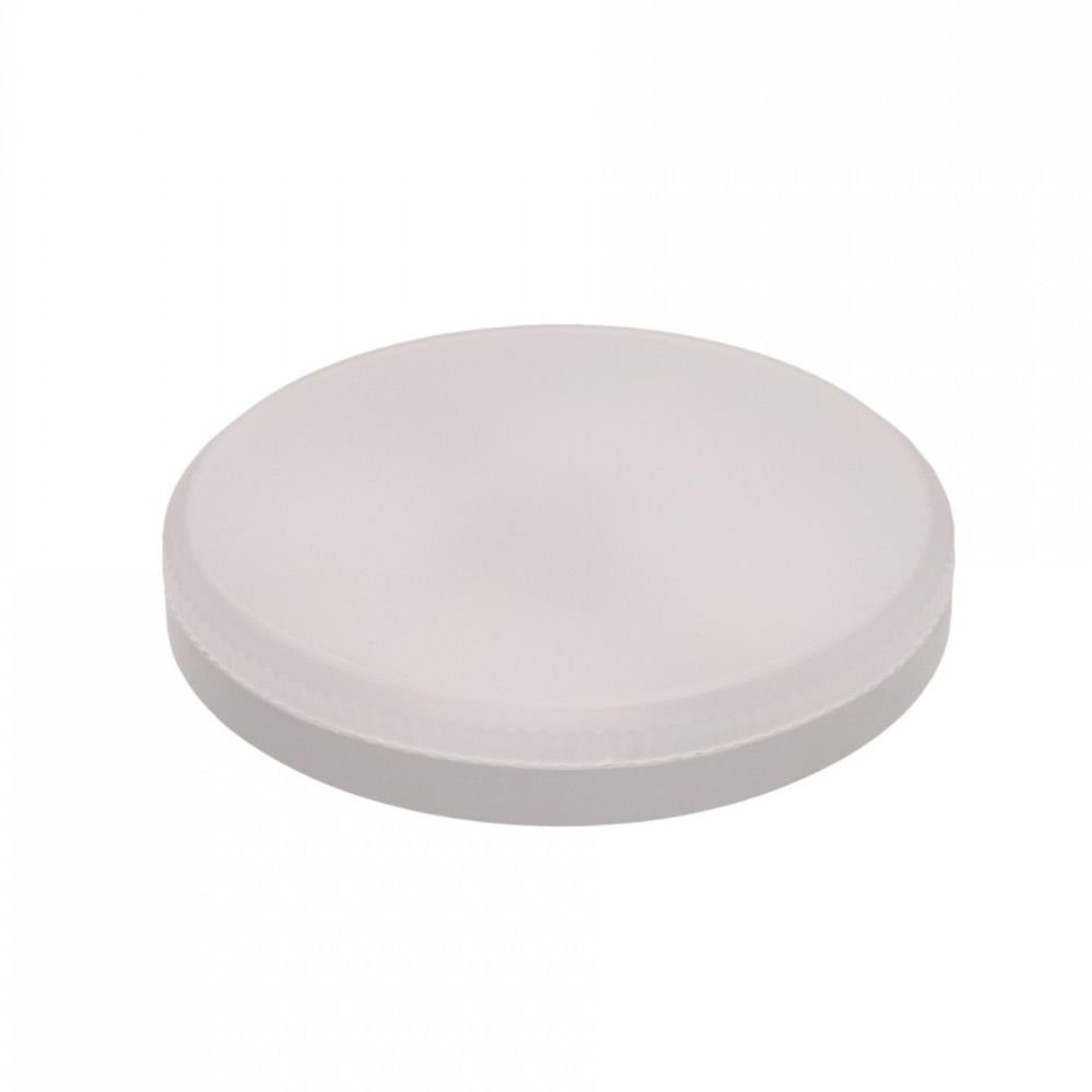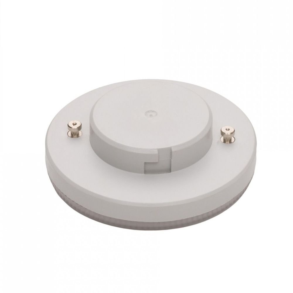 Светодиодная лампочка в форме таблетки с цоколем GX53 и размерами 24 мм по высоте и диаметром в 75 мм обладает мощностью в 8 W, благодаря чему она может осветить 2.7 кв. м. Цветовая температура – 4000 К, т.е. белый свет, подходящий для рабочего настроя (не рекомендуется для детской комнаты). Изделие рассчитано на использование в сети с переменным напряжением в 220-240В.