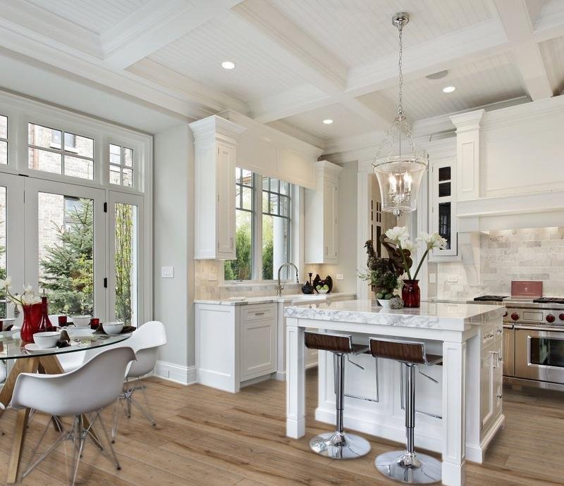 Влагостойкий ламинат 33-го класса, от германского производителя Kronotex (Кронотекс), предложил данную модель из коллекции Robusto в модном цвете Дуб Рип. В одной упаковке 1,293 м2 состоящая из 5 панелей размером 1375х188х12 мм. V-образная фаска по периметру доски.
