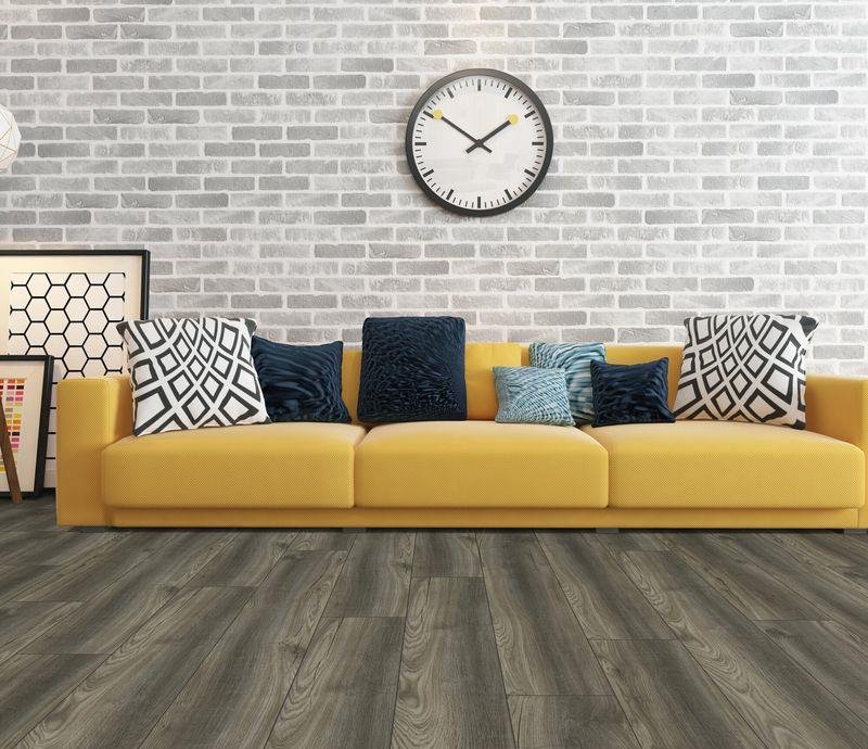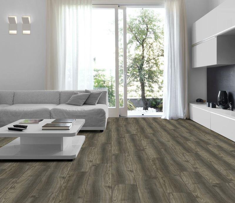 Влагостойкий ламинат 33-го класса, от германского производителя Kronotex (Кронотекс), предложил данную модель из коллекции Robusto в модном цвете Дуб Порт титан. В одной упаковке 1,293 м2 состоящая из 5 панелей размером 1375х188х12 мм. V-образная фаска по периметру доски.