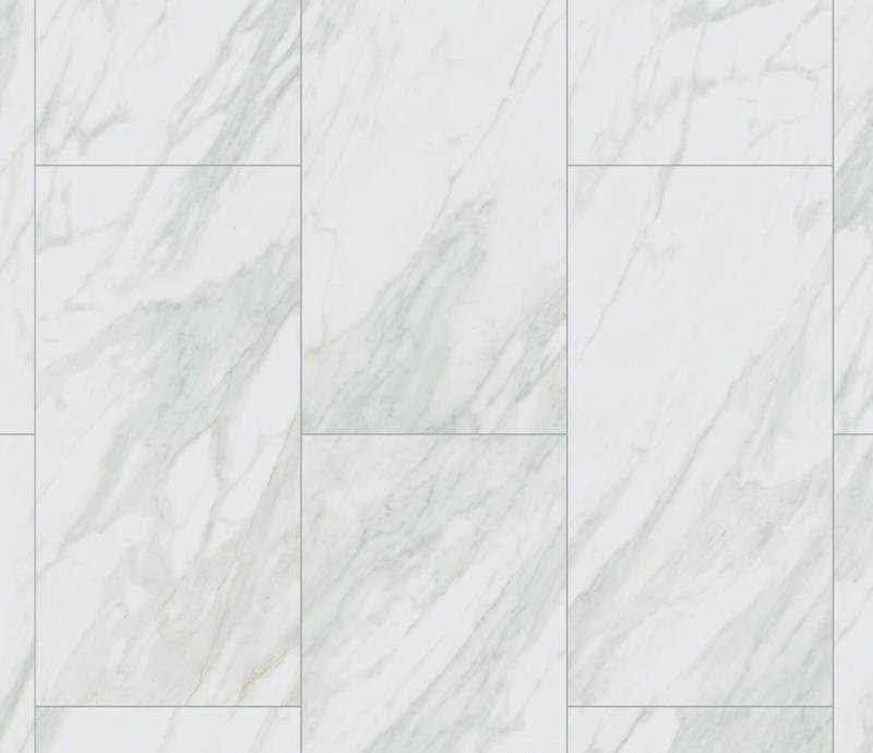 Влагостойкий виниловый SPC пол 34 класса Stone в каменном декоре Венато (Venato) бело-серого цвета с 4V фаской по периметру на замковой системе 1click 2go pure, толщиной 5 мм от производителя Kronospan. Дизайн выполнен под плитку Уникальное отличие плитки Rocko — вместо пленок материал покрывается тремя слоями акрилового лака с тиснением. Напольное покрытие Rocko Stone Венато (R095) продаётся упаковками по 11 планок размером 295×600 мм общей площадью 1,95 м².