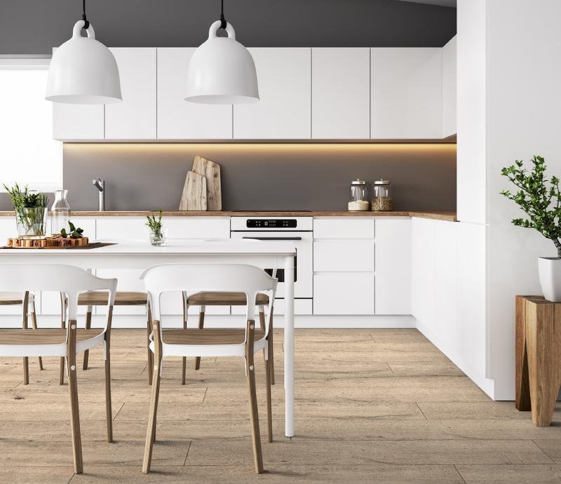 Влагостойкий виниловый SPC пол 34 класса Wood в однополосном декоре Утро (Mornel) светло-коричневого цвета с 4V фаской по периметру на замковой системе 1click 2go pure, толщиной 5 мм от производителя Kronospan. Дизайн выполнен под Дерево Уникальное отличие плитки Rocko — вместо пленок материал покрывается тремя слоями акрилового лака с тиснением. Напольное покрытие Rocko Wood Утро (R125) продаётся упаковками по 7 планок размером 295×1210 мм общей площадью 2,5 м².