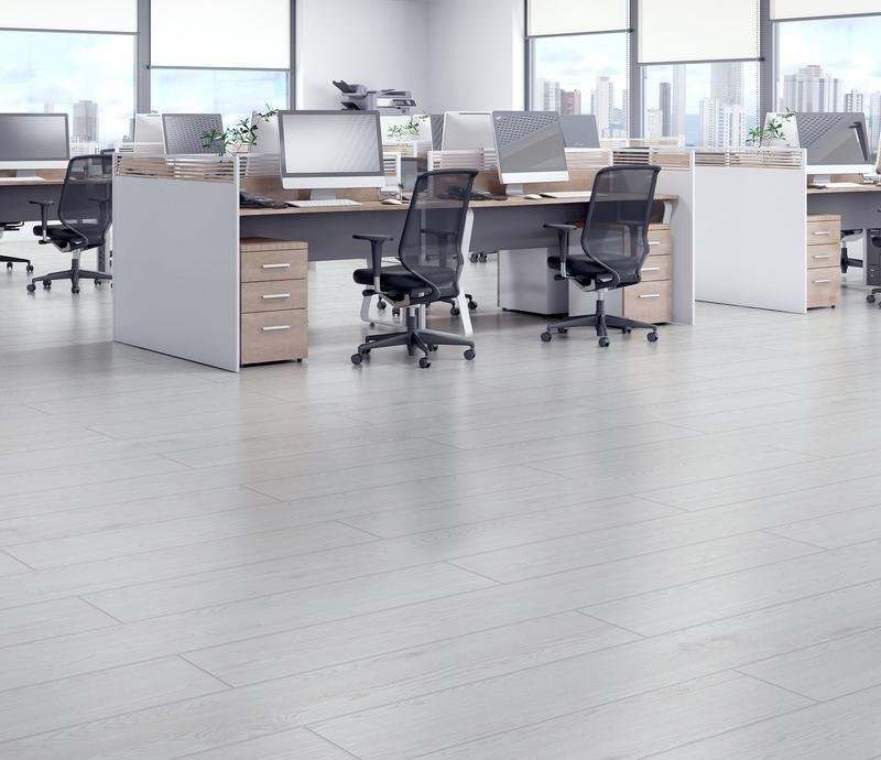 Влагостойкое виниловое покрытие 42 класса Sense в однополосном декоре Дуб Кайлас (Kailash Oak) белого цвета с фаской по периметру для замковой укладки, толщиной 4 мм от производителя Royce.