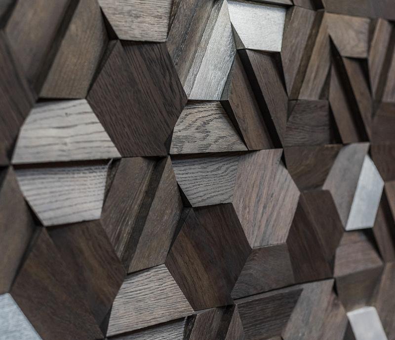 Индивидуальная игра с разным освещением позволяют редактировать дизайн помещения не внося конструктивных изменений, а долговечность и естественная теплоотдача ценной породы дерева Эбен сделают помещение еще комфортней и уютней. Используйте все преимущества деревянный стеновых 3D панелей Crownwood Магна Эбен и воплощайте в реальность уникальный дизайн вашего помещения. Вся 3D мозаика для стен Crownwood