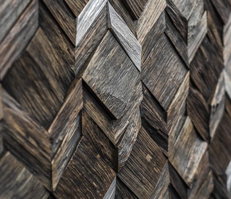 Декоративная мозаика для стен WP3D21R061 Вира Эбен от Российского производителя Crownwood из колотого Дуба покрытого морилкой на основе масла. Дизайн выполнен в форме объёмных 3D ромбиков цвета Эбони с серебристыми вставками. В одном модуле 1-2 серебристых элемента. Каждая панель размером 312×425 мм играет по толщине от 5 до 18 мм. Настенная мозаика Vira Ebony изготавливается исключительно под заказ и поставляется поштучно модулями площадью 0,13 м². В 1 кв.м. входит ± 7,5 модулей. Гарантия на продукцию до 30 лет.