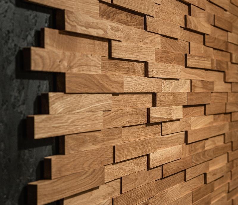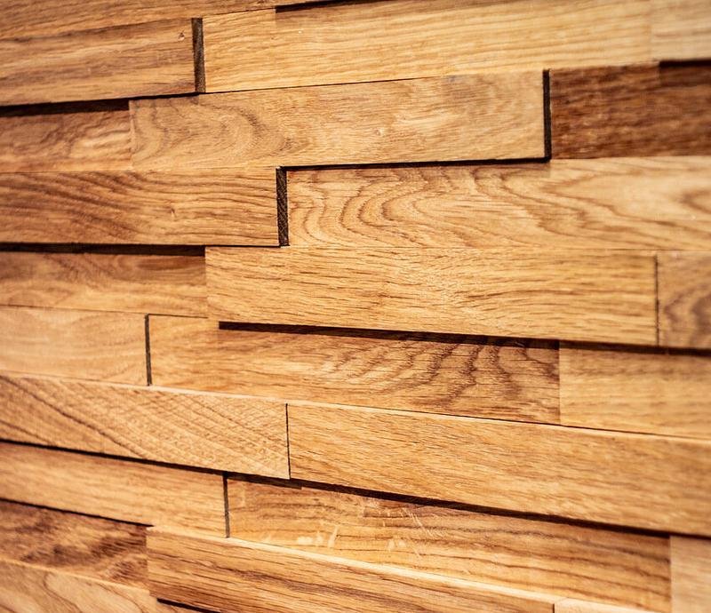 Декоративная мозаика для стен WP3D3020 Астра от Российского производителя Crownwood из натурального массива шлифованного дуба покрытого бесцветным маслом. Дизайн выполнен в форме 3D полос 30х220 мм естественного цвета. Каждая панель размером 660x270 мм соединяется с помощью системы Шип-Паз и занимает толщину в 4-16 мм. Настенная мозаика Astra изготавливается исключительно под заказ и поставляется упаковками по 6 модулей общей площадью 1,83 м². Гарантия на продукцию до 30 лет.