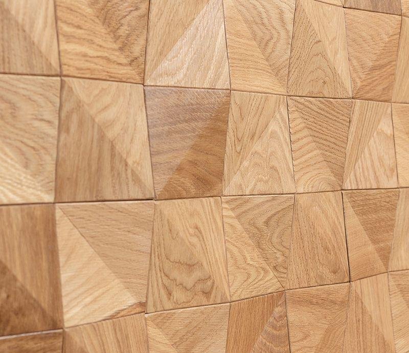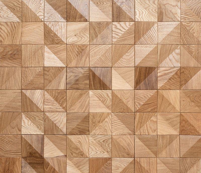 Декоративная мозаика для стен WP3DA020 Аравия натур от Российского производителя Crownwood из брашированного массива дуба под бесцветным маслом. Дизайн выполнен в форме конусных 3D квадратов 10х10 см естественного цвета. Каждая панель размером 300x300 мм соединяется с помощью системы Шип-Паз и занимает толщину 4-18 мм. Настенная мозаика Aravia Natur изготавливается исключительно под заказ и поставляется упаковками по несколько модулей общей площадью 0,63 м². Гарантия на продукцию до 30 лет.