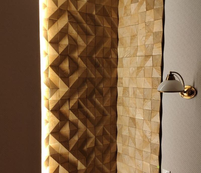 Творческая работа с подсветкой позволяют переосмыслить дизайн помещения не внося конструктивных изменений, а долговечность и естественная теплоотдача ценных пород дерева сделают помещение еще комфортнее. Используй все преимущества деревянный стеновых панелей Crownwood Аравия натур и воплоти в реальность эксклюзивный дизайн помещения. Вся 3D мозаика для стен Crownwood