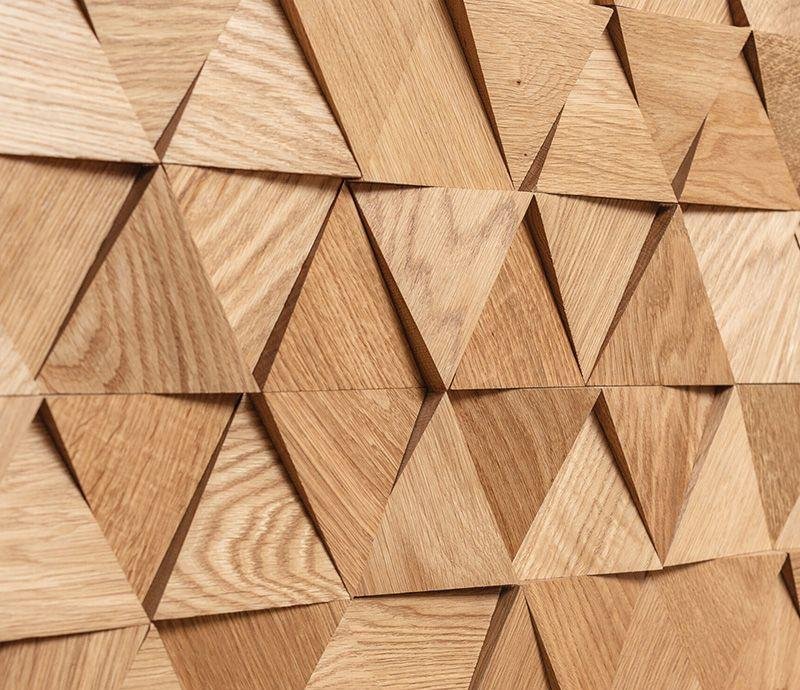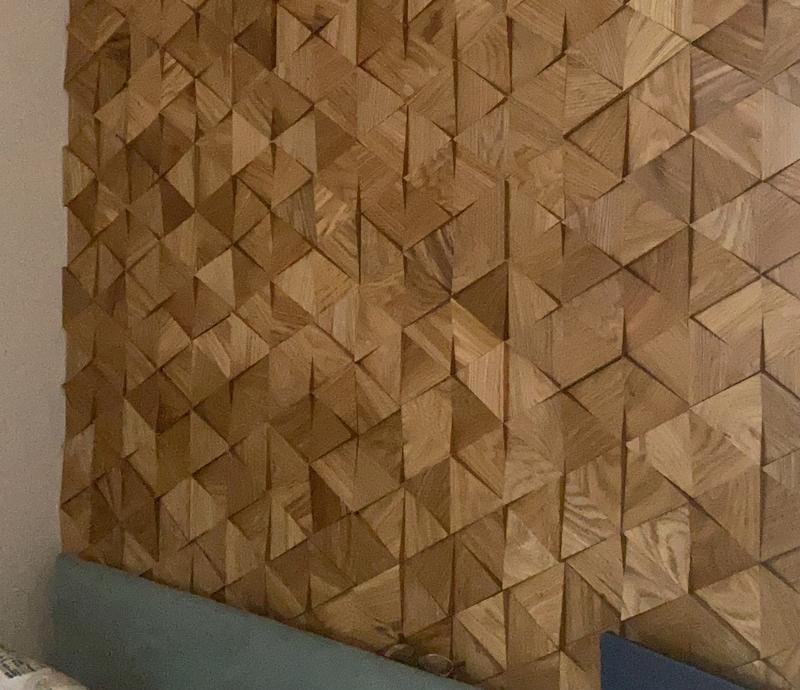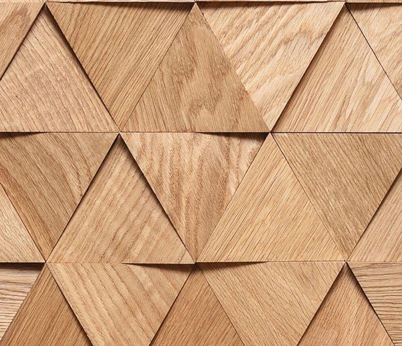 Декоративная мозаика для стен WP3DT021 Трой спил от Российского производителя Crownwood из брашированного массива дуба под бесцветным УФ-маслом. Дизайн выполнен в форме объемных косых треугольников 112×96,5 мм натурального цвета. Сборная панель размером 337×387 мм соединяется с помощью системы Шип-Паз и занимает толщину 6-16 мм. Настенная мозаика Troy изготавливается только под заказ и поставляется упаковками по несколько модулей общей площадью 0,91 м². В 1 кв.м. входит ± 8 модулей. Гарантия на продукцию до 30 лет.