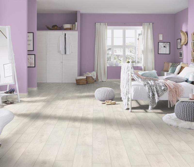 Однополосный ламинат 33 класса Super Natural в декоре Дуб Аспен (Aspen Oak) молочного цвета от производителя Krono Original by Kronospan толщиной 8 мм. Планки на замковой системе 1clic2go с фаской по периметру. Ламинированное напольное покрытие Super Natural Дуб Аспен (8630) продаётся упаковками по 9 планок размером 192×1285 мм общей площадью 2.22 м² .