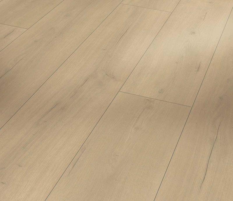 Однополосный ламинат 32 класса Trendtime в декоре Дуб Лофт натуральный (Loft Natural Oak) бежевого цвета от производителя Parador толщиной 9 мм, на замковой системе Safe-Lock PRO с фаской по периметру. Полуматовая поверхность с текстурой дуба. Специальная основная плита Aqua-Proof позволяет использовать настил даже во влажных помещениях и на систему теплых полов.