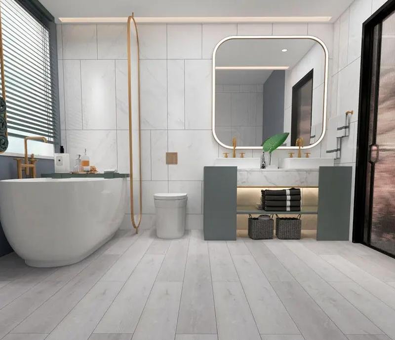 Водостойкий SPC ламинат 43 класса Villa в декоре Дуб Лаурия (Lauria Oak) бежево-серого цвета от производителя Betta толщиной 4.5 мм. Планки на замковой системе Click с фаской по периметру укладывается плавающим способом на специальную подложку. Напольное покрытие Villa Дуб Лаурия (V113) продаётся упаковками по 10 планок размером 184×1220 мм общей площадью 2,248 м². Предоставляется гарантия производителя Betta в 25 лет.